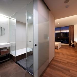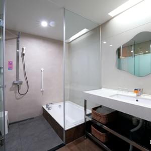 The independently set bathtub space allows you to thoroughly relax your body and mind after a day of activities, starting a leisurely and enjoyable stay from the moment you step through the door.