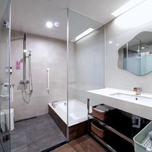 The separate bathtub area allows you to completely release fatigue after a busy journey; the thoughtful little balcony design brings in natural light and gentle breezes, adding a touch of leisure to your stay.